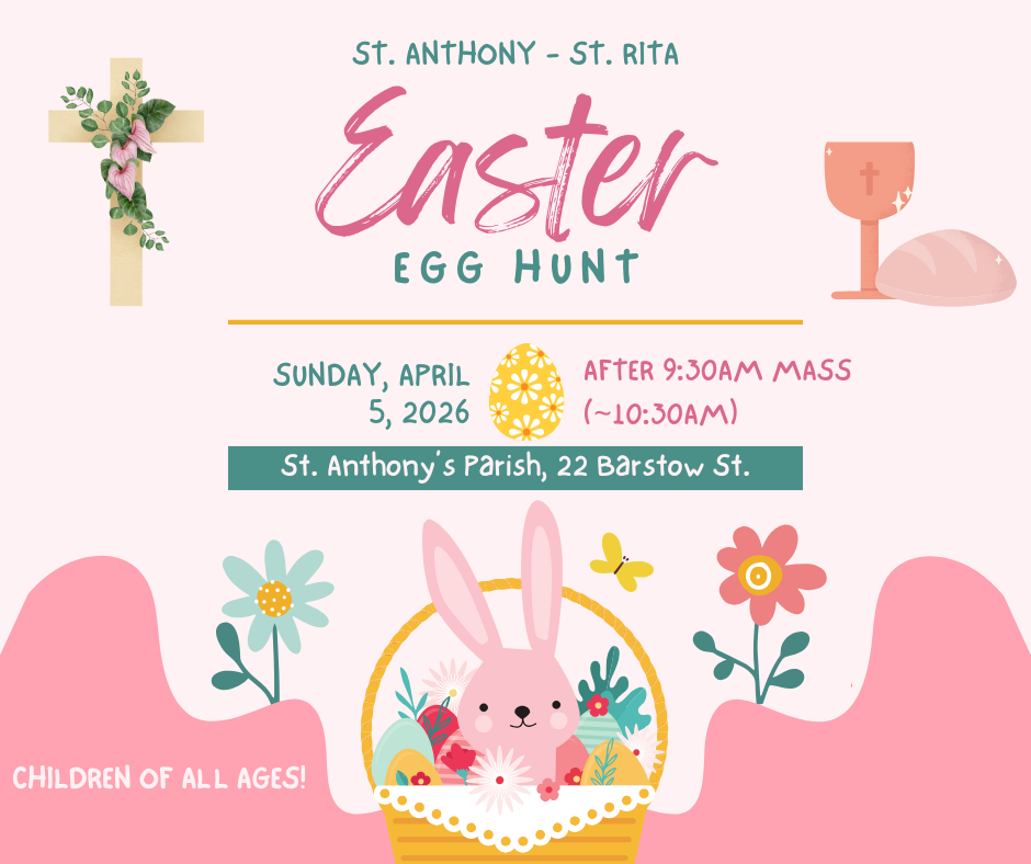 9:30 AM Mass at St. Anthony’s + Easter Egg Hunt CLICK for more!
