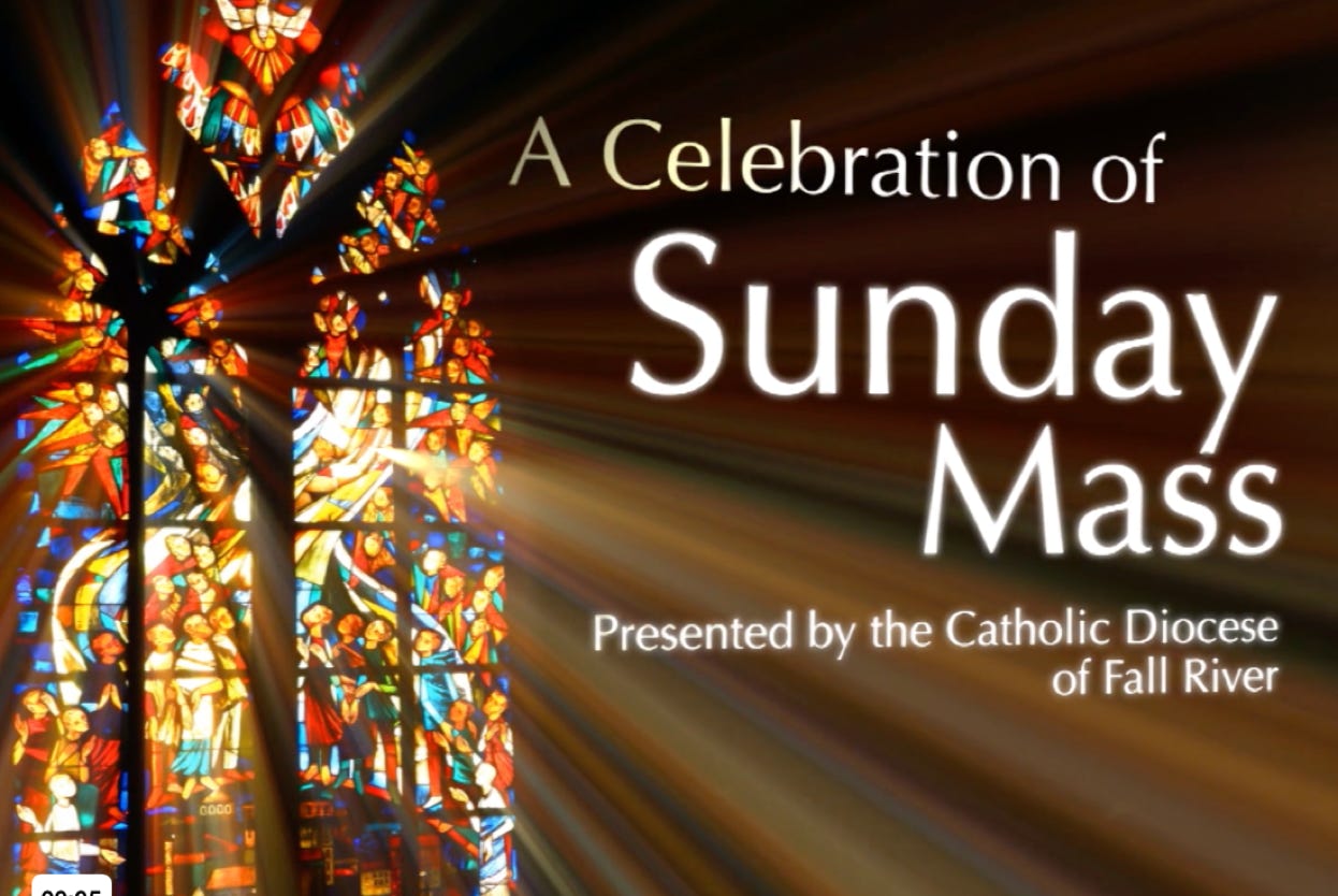 This graphic links to the English Mass, mas também há uma missa portuguesa às 19h em muitos provedores locais de TV a cabo em nossa Diocese. Verifique as listas locais.